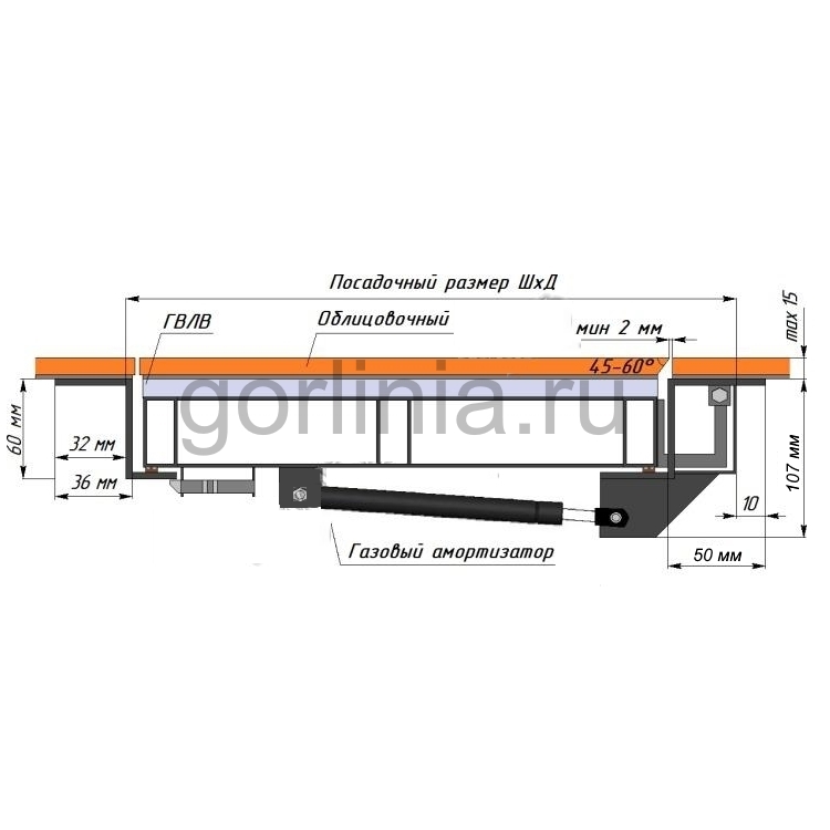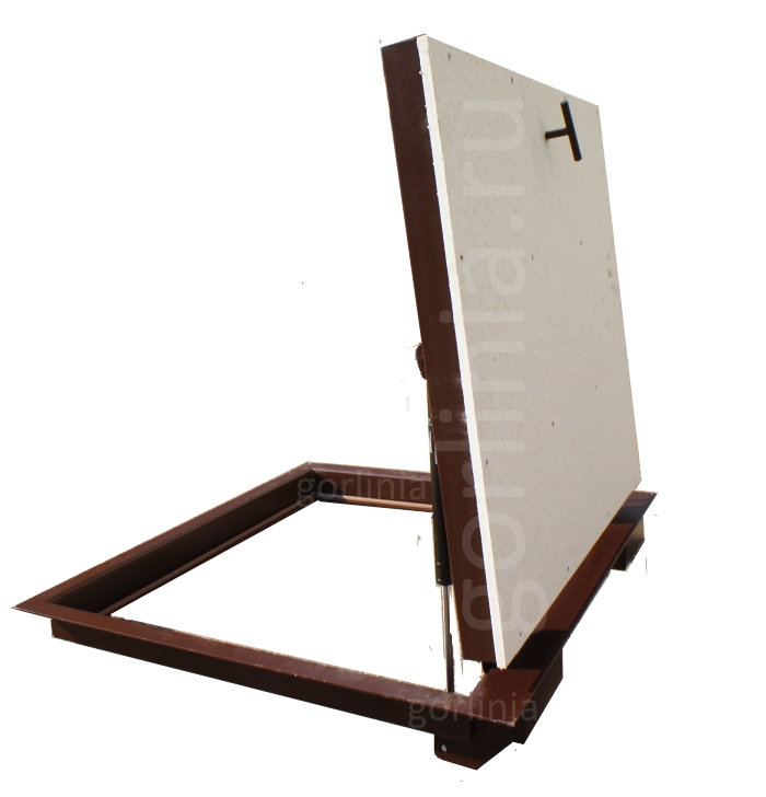 Облегченная модель в заказном размере без щелей в полу с уведенными за ось открывания петлями по длине 700. Легкая ходовая часть и удобная установка. При формировании конфигурации напольного отверстия обратите внимание, что защитные кожухи шарниров выходят за посадочную отметку по плечевой стороне 600.