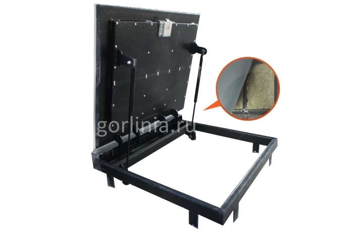 Рама без наличников выставляется в существующем отверстии 97*70 см с допусками, крепится в перекрытии через вертикальные пластины даже когда Ваш ремонт закончен и пол выложен керамогранитом или настелена ламинированная доска.